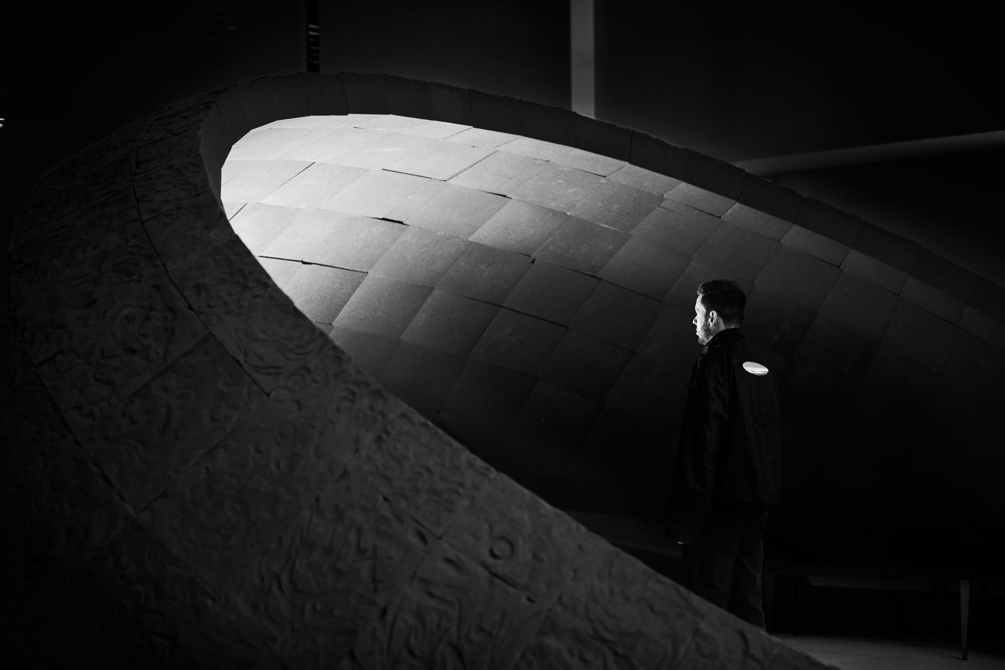 The MIT lecturer and artist-in-residence transformed hundreds of inscribed and hammered steel plates into “Amulet,” a soaring public artwork at City Hall Plaza.